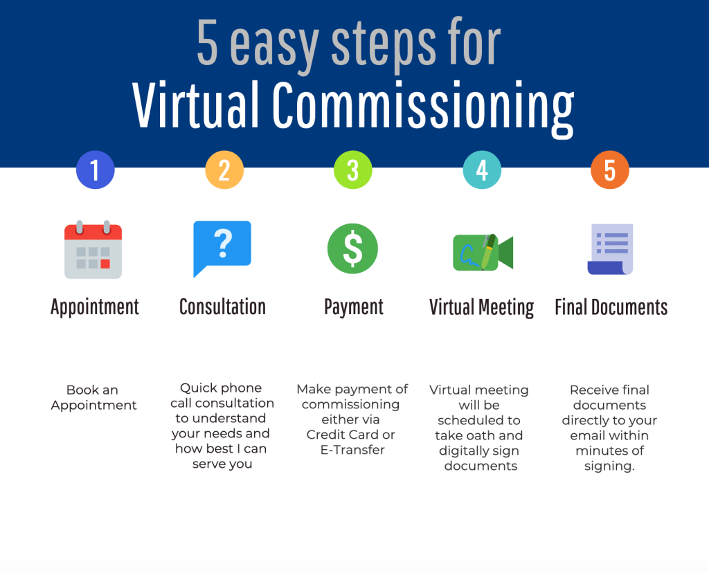 Remote commissioning is an authentication and signature process for taking affidavits and statutory declarations that uses audio-visual technology. It can simply be done from the comfort of your own home virtually.